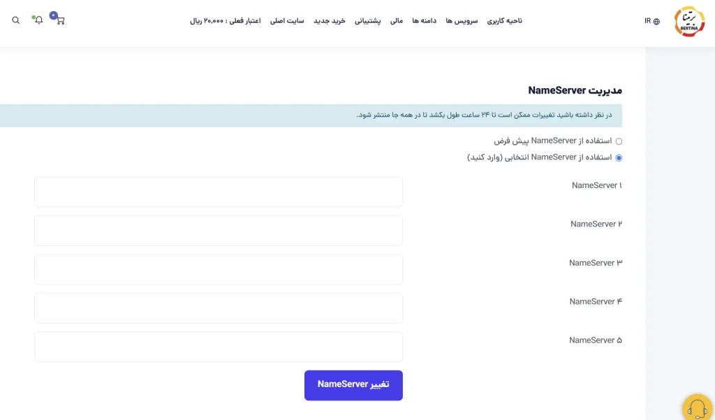 جهت تغییر Ns های دامنه بین المللی میتوانید به دو روش زیر اقدام نمایید: