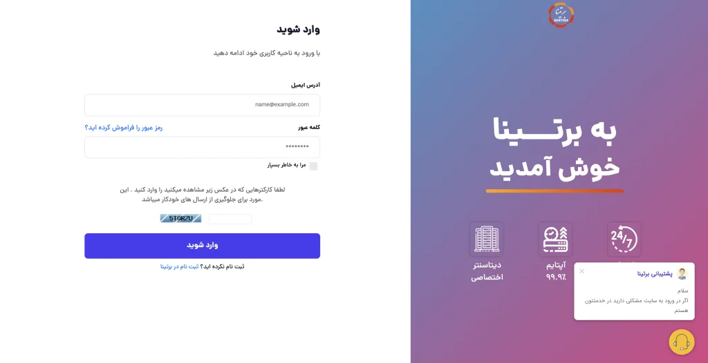 1 – وارد ناحیه کاربری خود در سایت برتینا شوید: